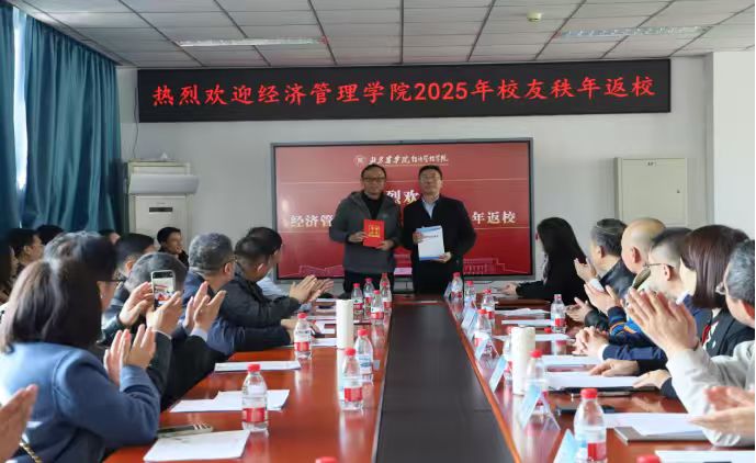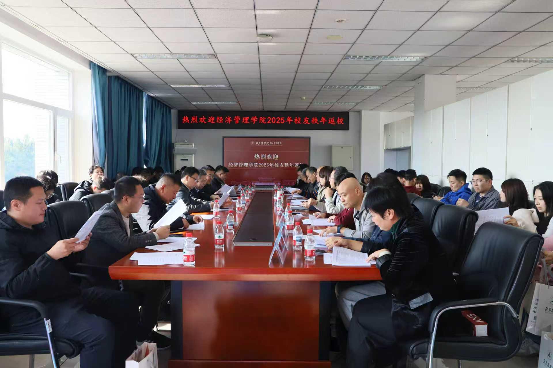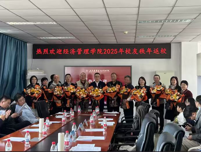 上午,“情系母校,共话发展”秩年返校大会在礼堂隆重举行。随后,校友们移步至经管楼401会议室,参加2025年秩年校友座谈会,与昔日恩师、同窗欢聚一堂,重温旧日时光,共绘未来新篇。校党委副书记郑品石,学院领导班子、退休老教师、校友的班主任和在校生代表等一同参加座谈会。