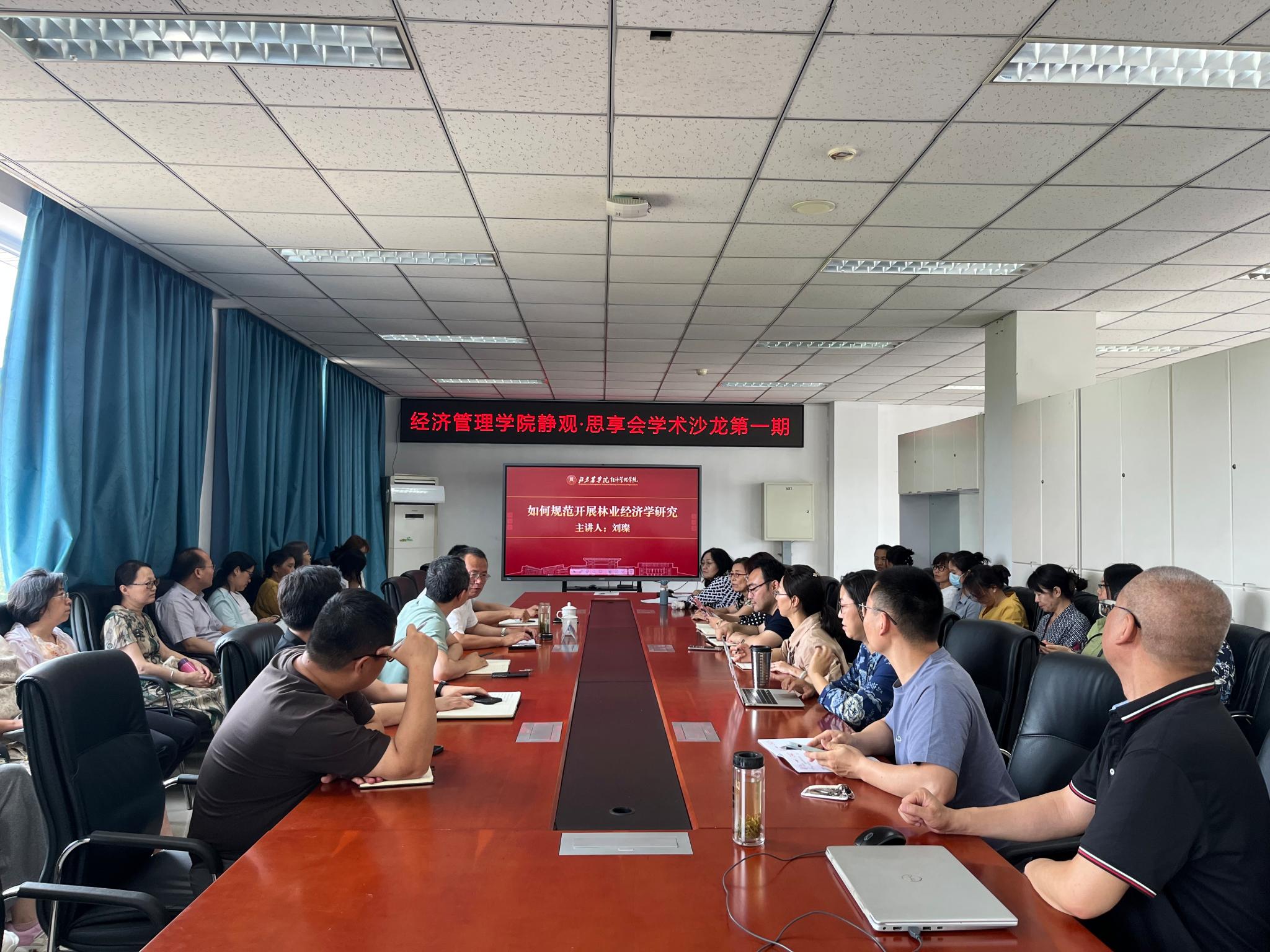 6月18日下午,yl23411永利集团在经管楼401会议室成功举办了首期“静观·思享会”学术沙龙。此次活动特邀学院高层次人才刘璨教授担任主讲嘉宾。刘璨教授以“如何规范开展林业经济学研究”为题,为学院教师带来了一场精彩的专题报告。沙龙由院长刘铁军主持,学院全体专业教师积极参与。