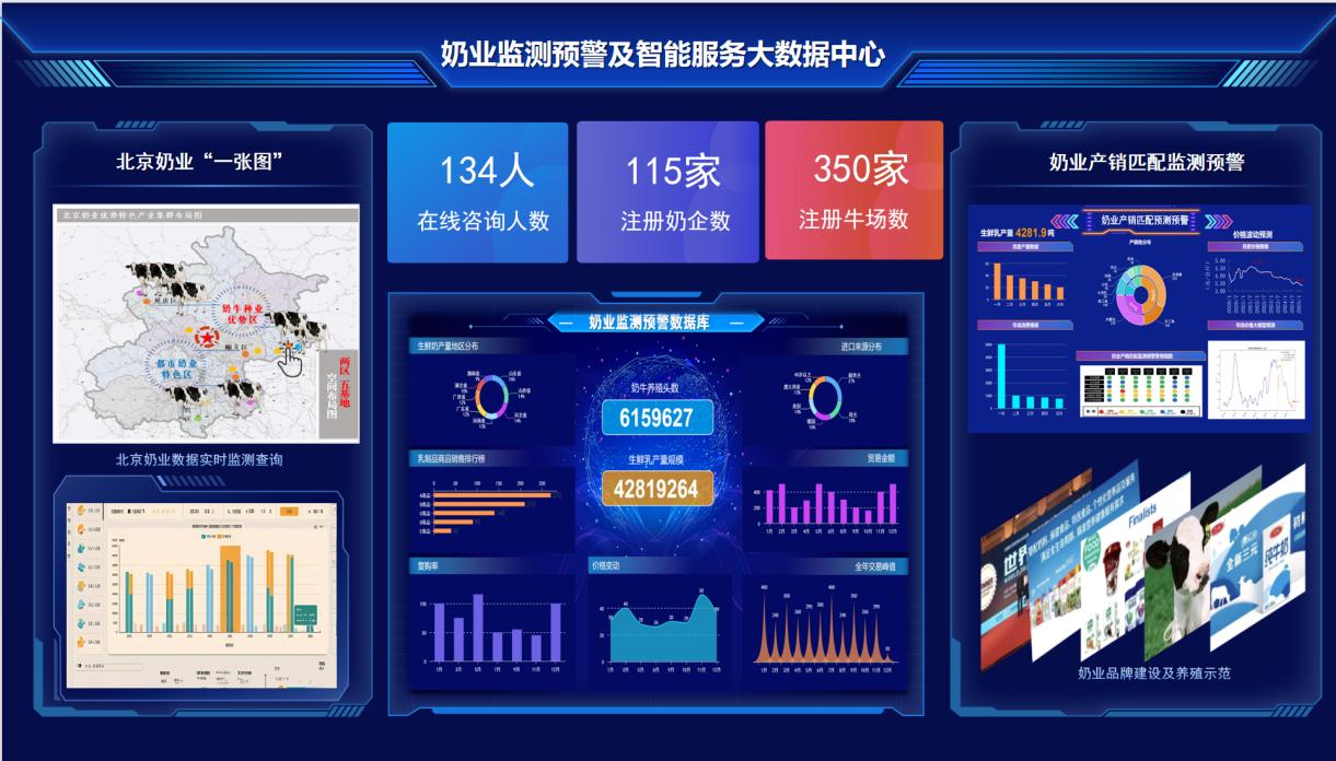 在成果推广应用方面,项目已选定北京市10个规模化奶牛养殖场作为首批示范应用基地,将全面落地智能服务产品,打造应用标杆。项目组将建立跟踪与实时响应机制,扩大技术覆盖面。会议同期,项目还特别发布了奶业监测及预警服务大数据中心平台,通过“北京奶业养殖文化信息汇集展示模块”“北京乳制品品牌宣介模块”等,致力于讲好北京奶牛故事,提振乳品消费信心。